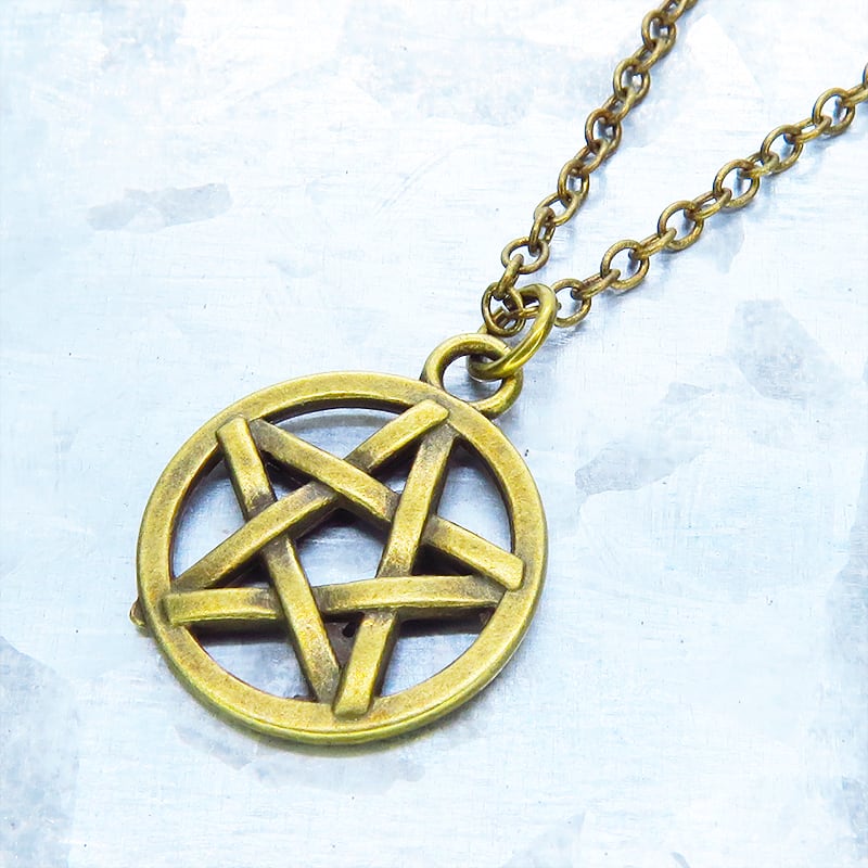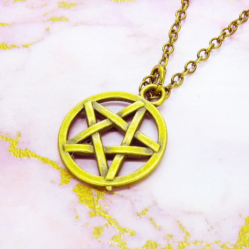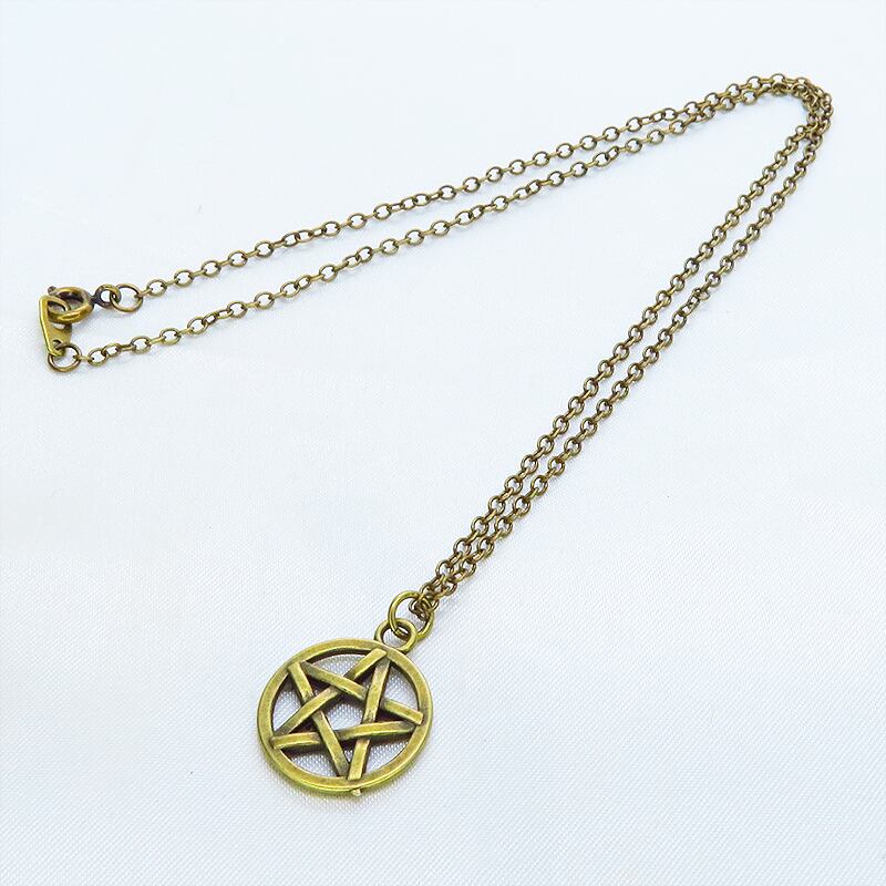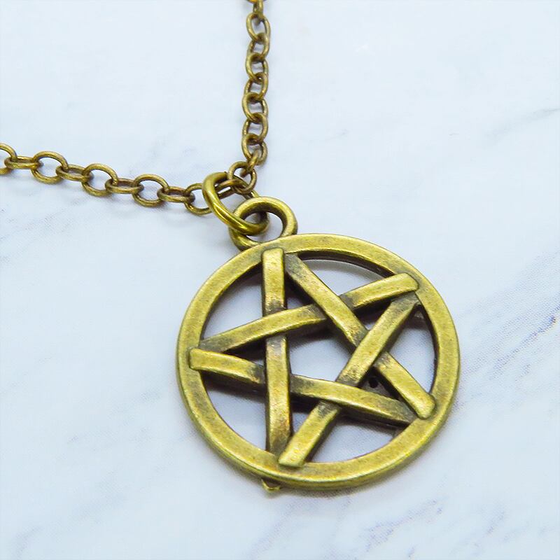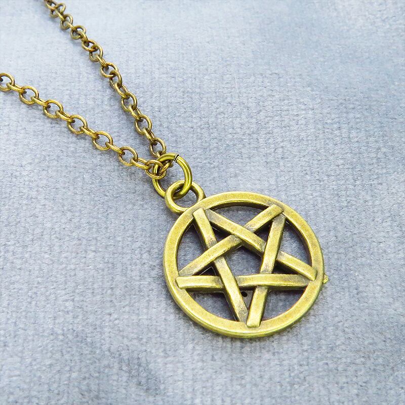 深みのあるアンティークゴールドカラーを纏い、古くから魔除けや守護の象徴として愛されてきたペンタグラム(五芒星)を主役に据えた一品です