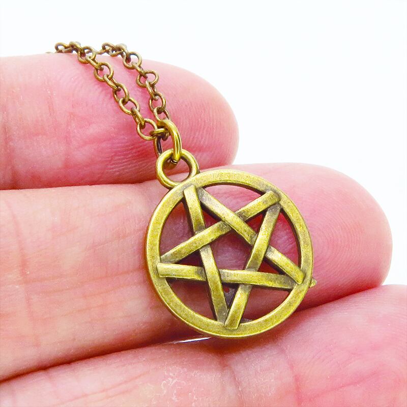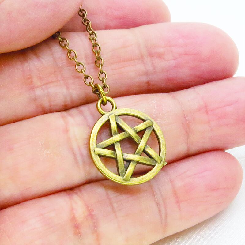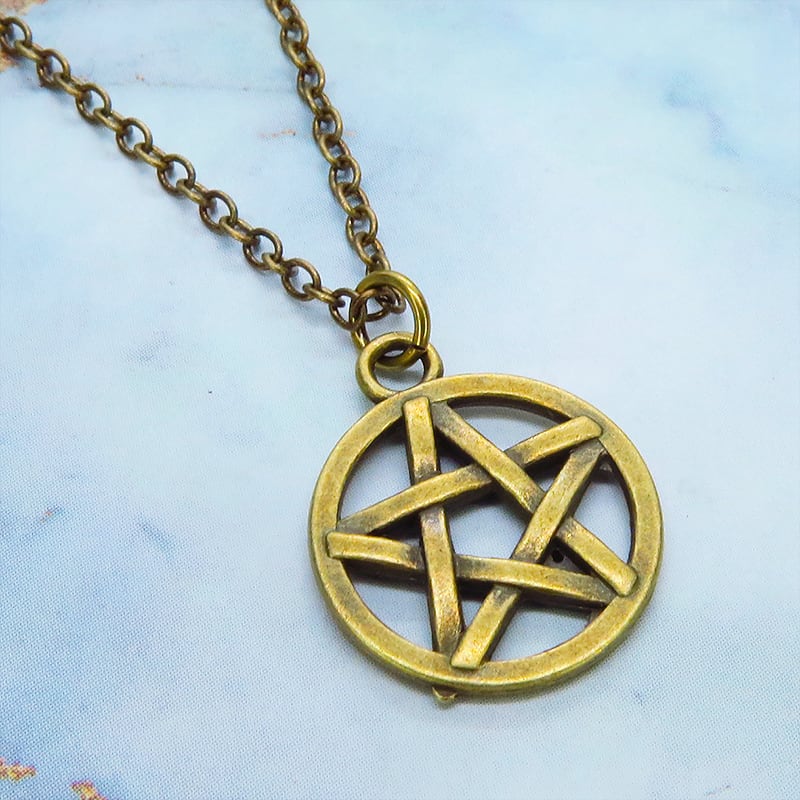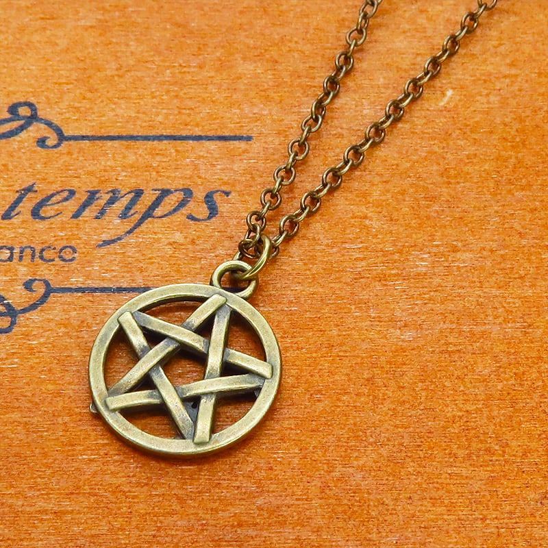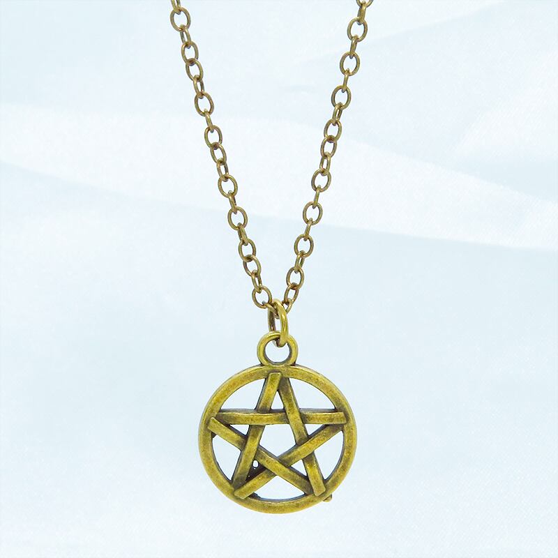 深みのあるアンティークゴールドカラーを纏い、古くから魔除けや守護の象徴として愛されてきたペンタグラム(五芒星)を主役に据えた一品です
