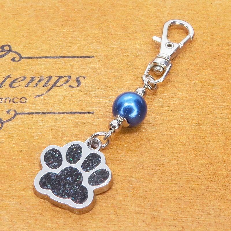 キラキラと光る肉球が目を引く、遊び心満載のキーホルダーです