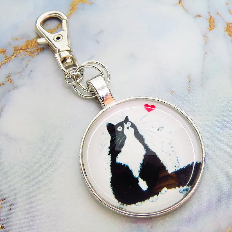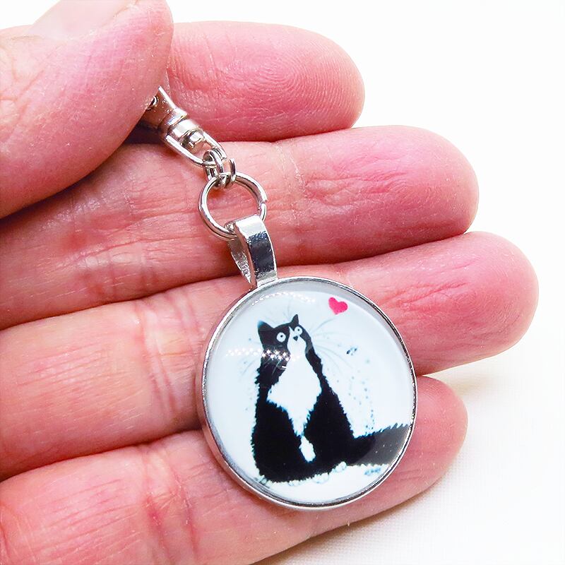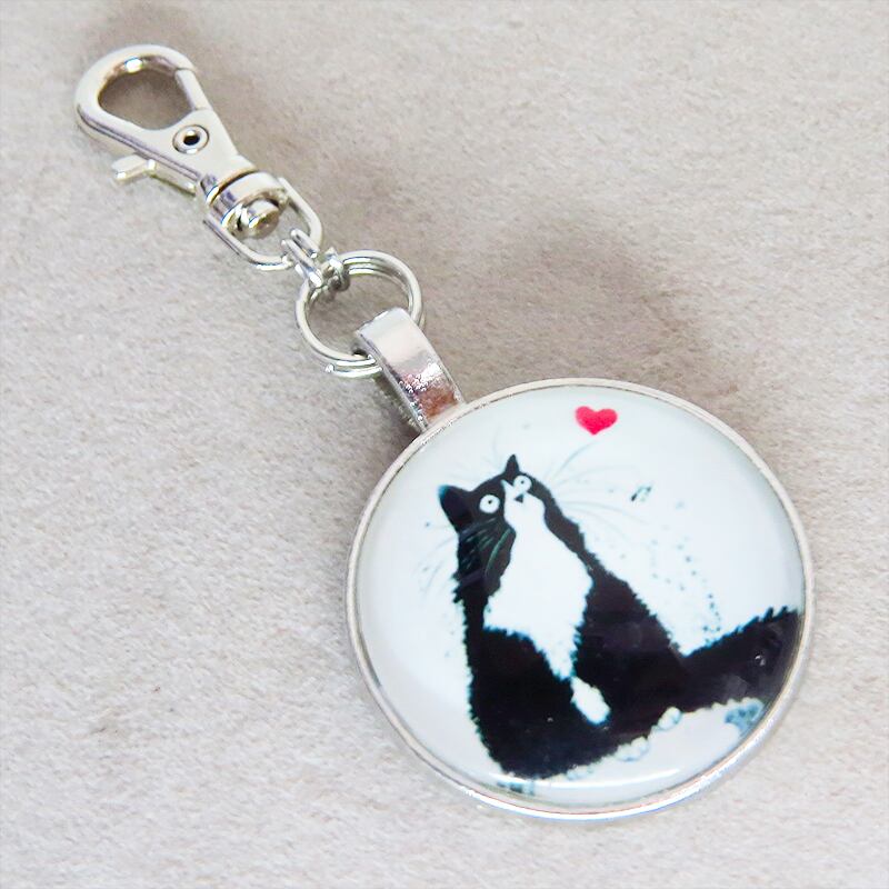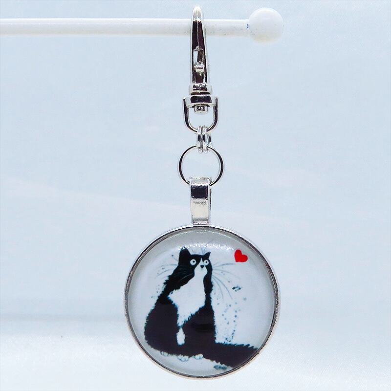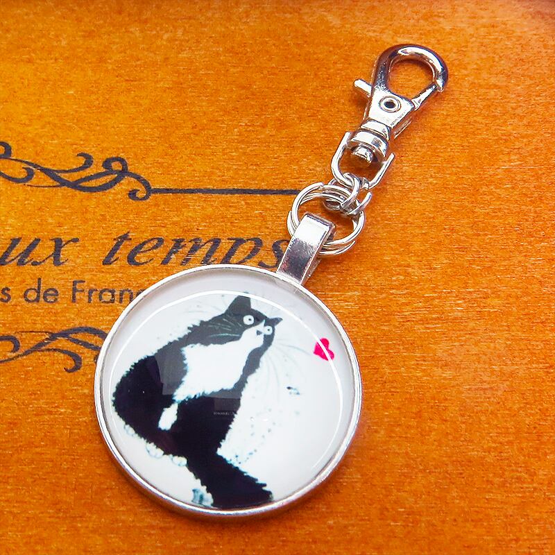 落ち着いたアンティークシルバーのカボションベースに収めることで、可愛らしさの中にも落ち着きを感じさせる、洗練された大人可愛い猫アイテムに仕上げました