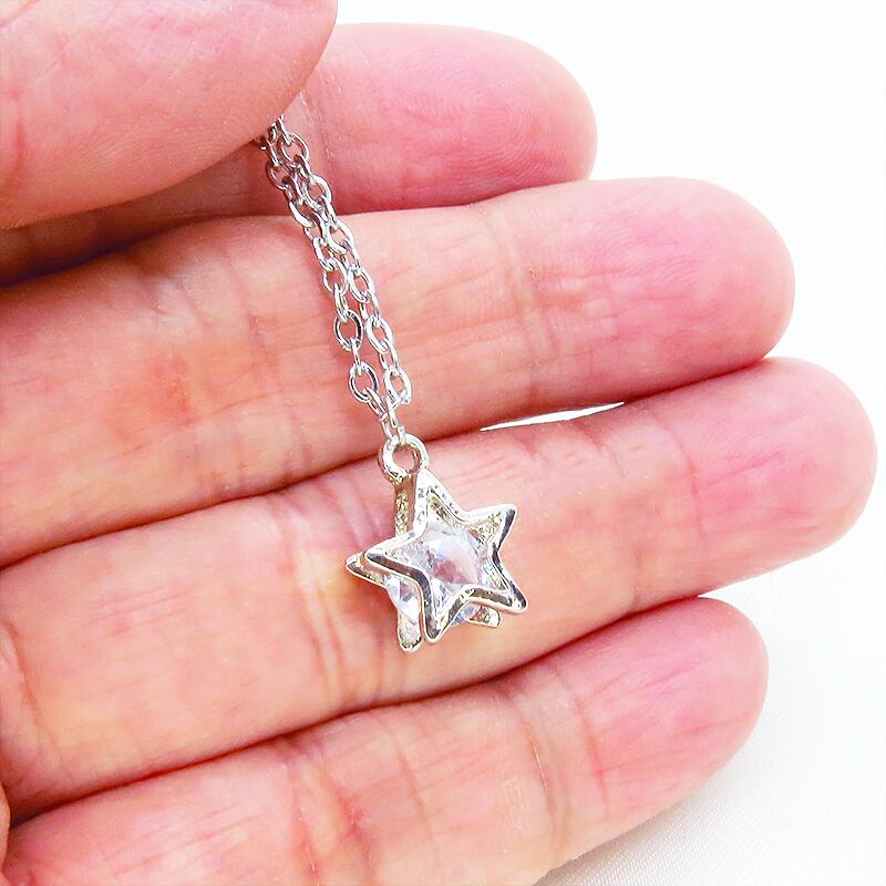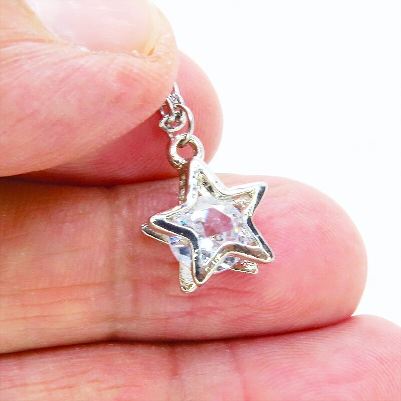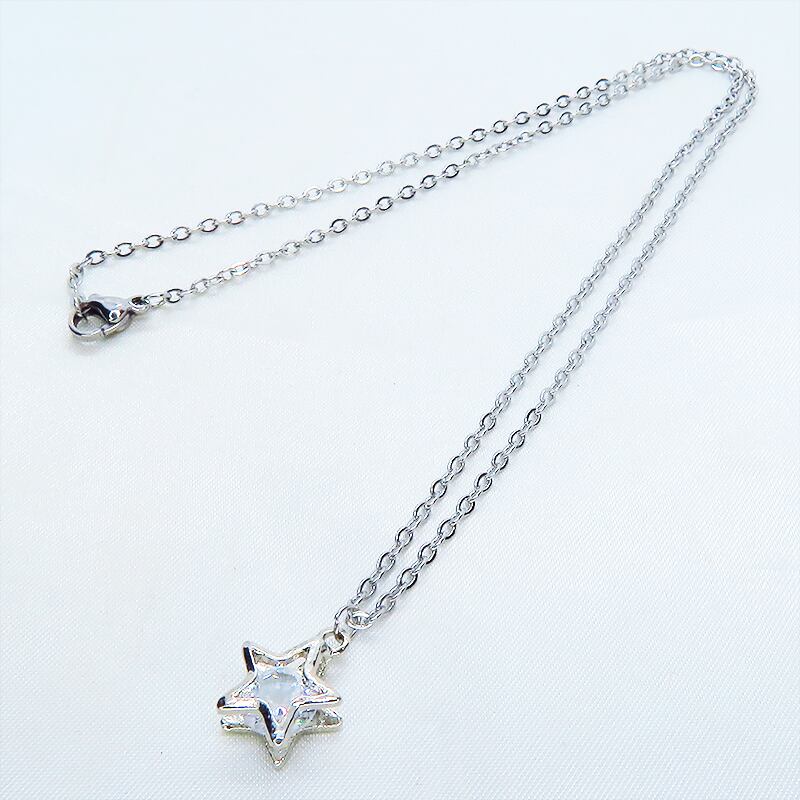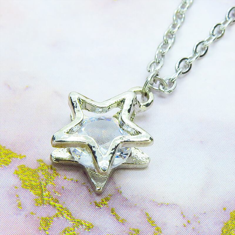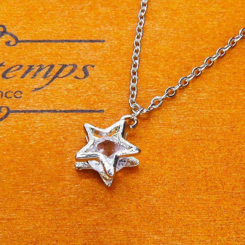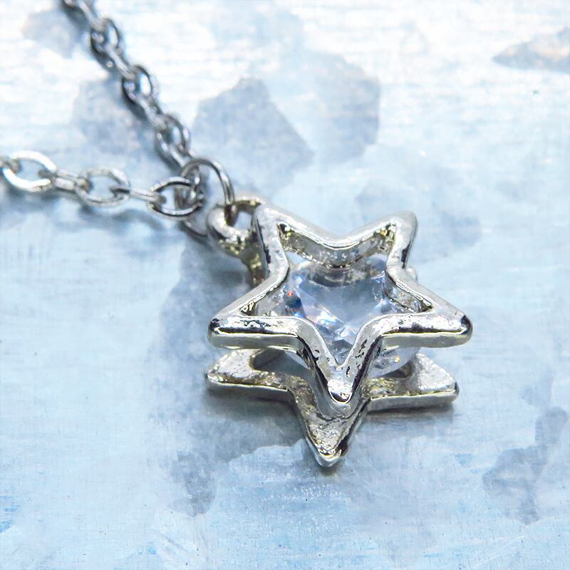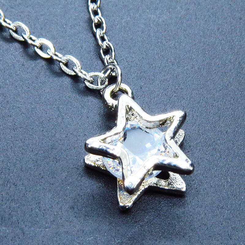 星型シルバーカラーのフレームにキュービックジルコニアをプラスしたシンプルなワンポイントチャームのネックレスです