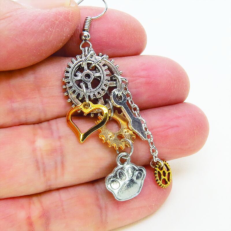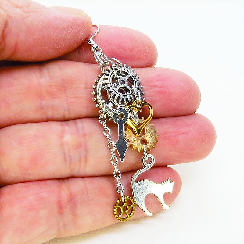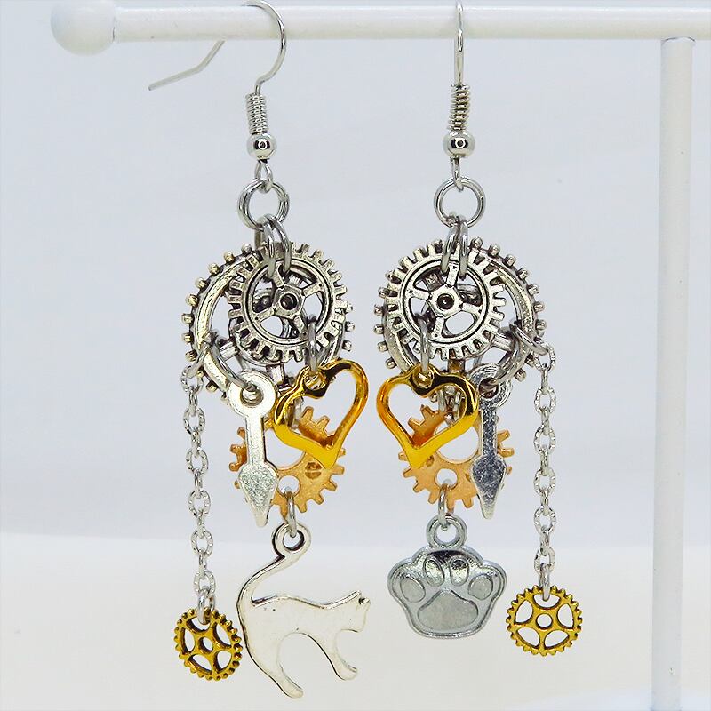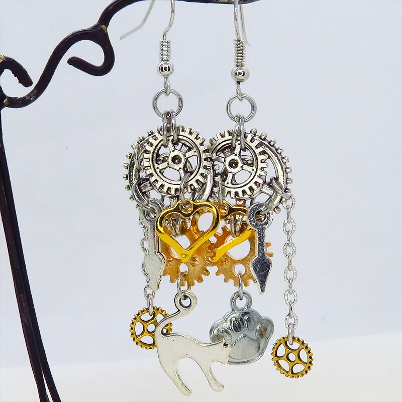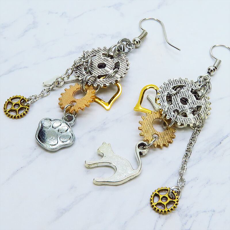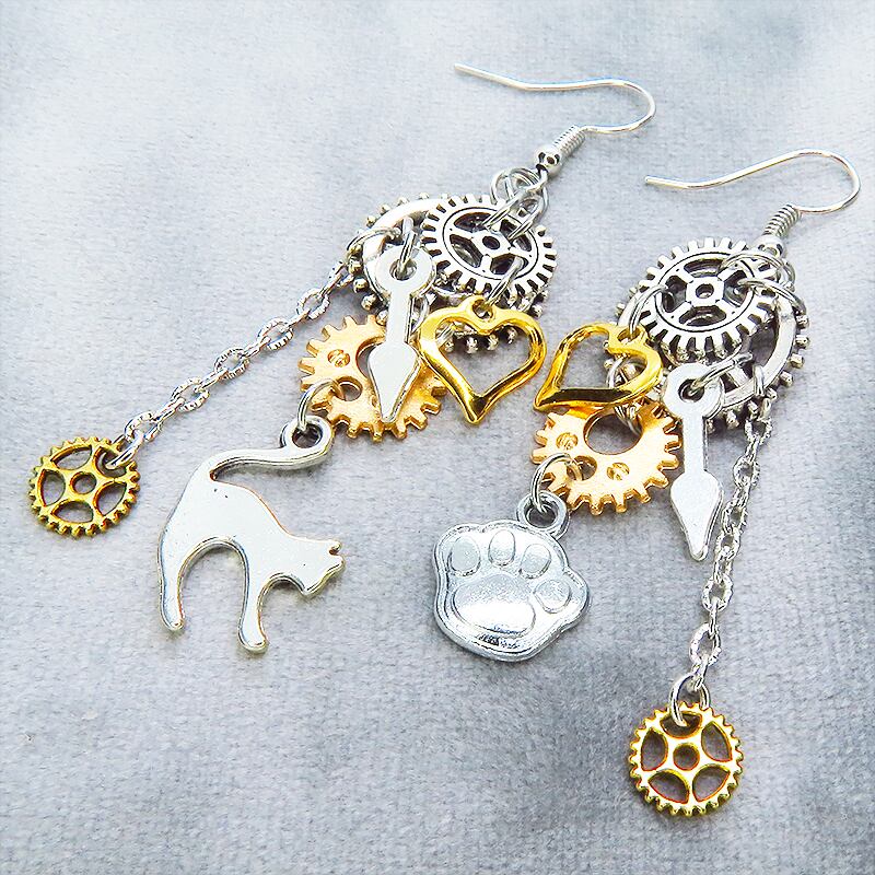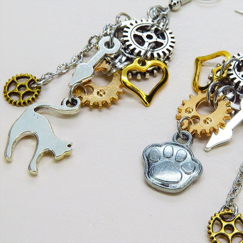 歩くたびに歯車と猫、そしてハートが軽やかにリズムを刻み、耳元をドラマチックに彩ります
