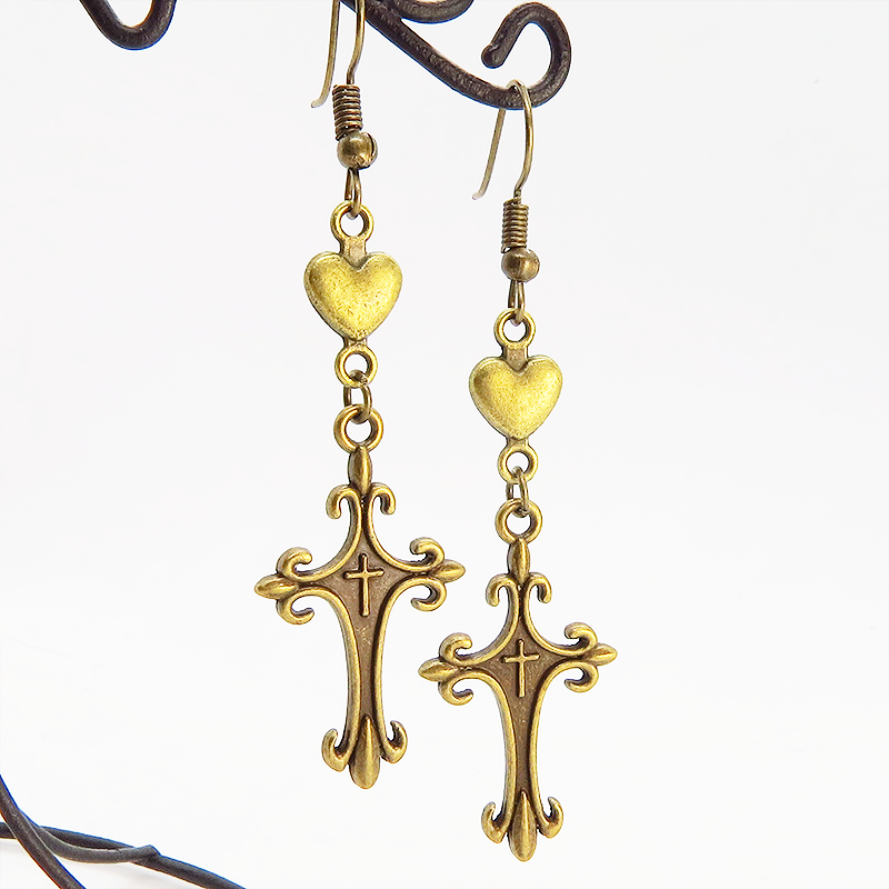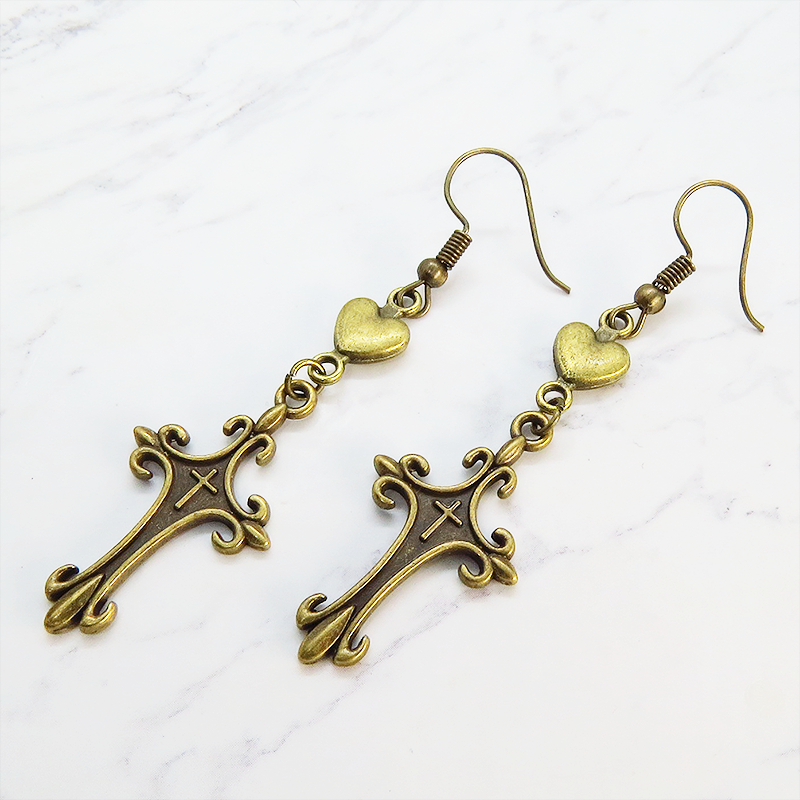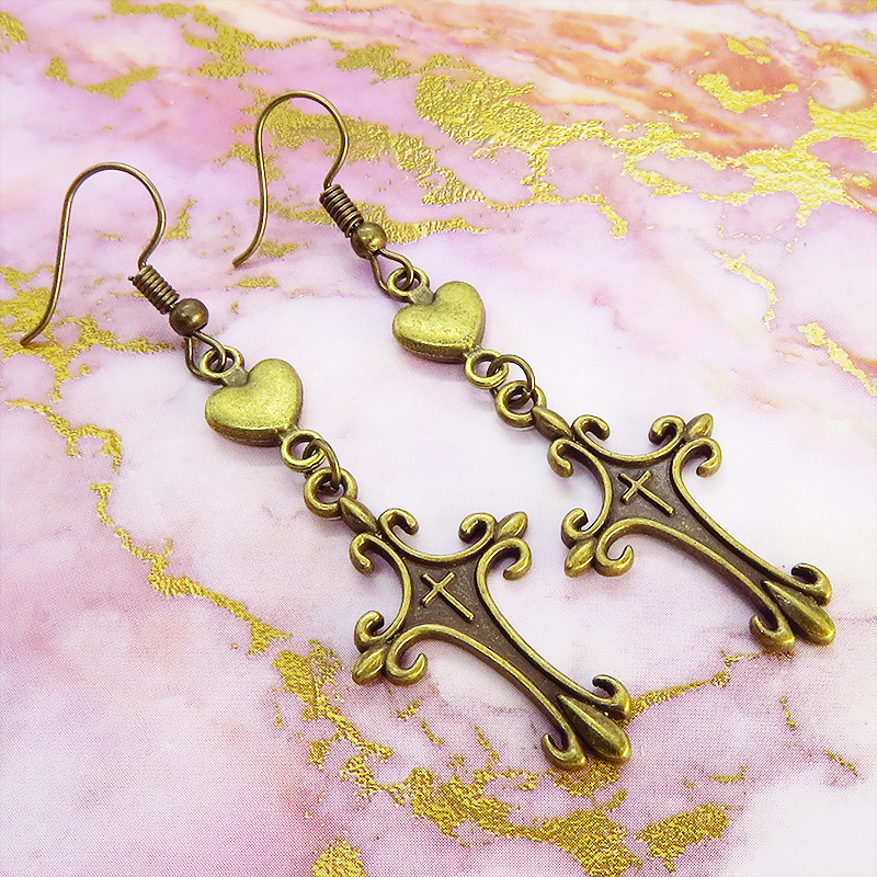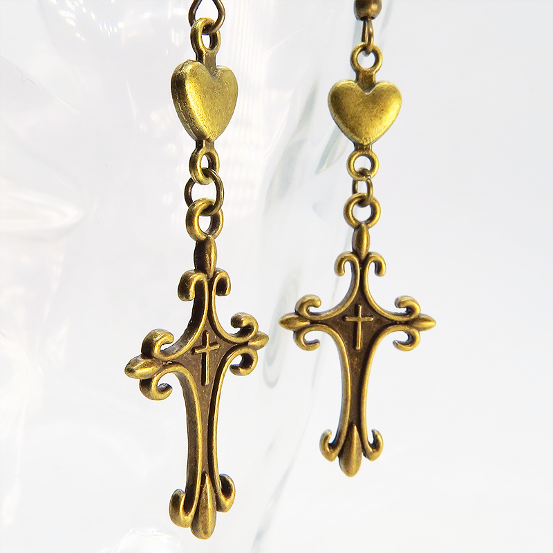 ゴシック調のデザインが美しいロザリオと愛らしいハートのモチーフが甘辛ミックスな魅力を演出します