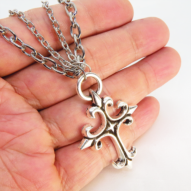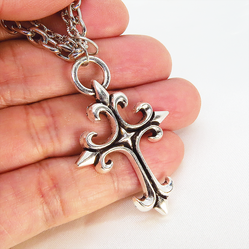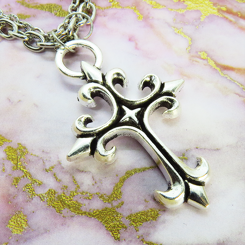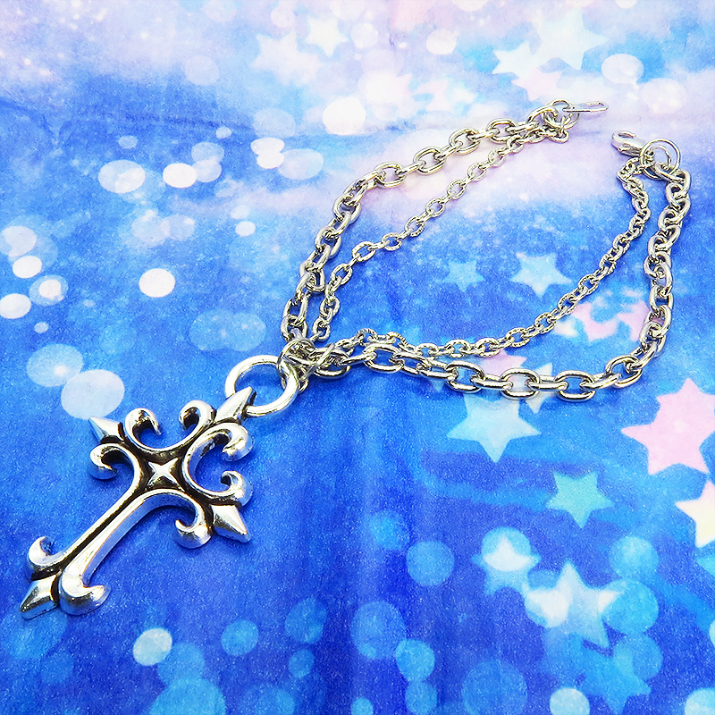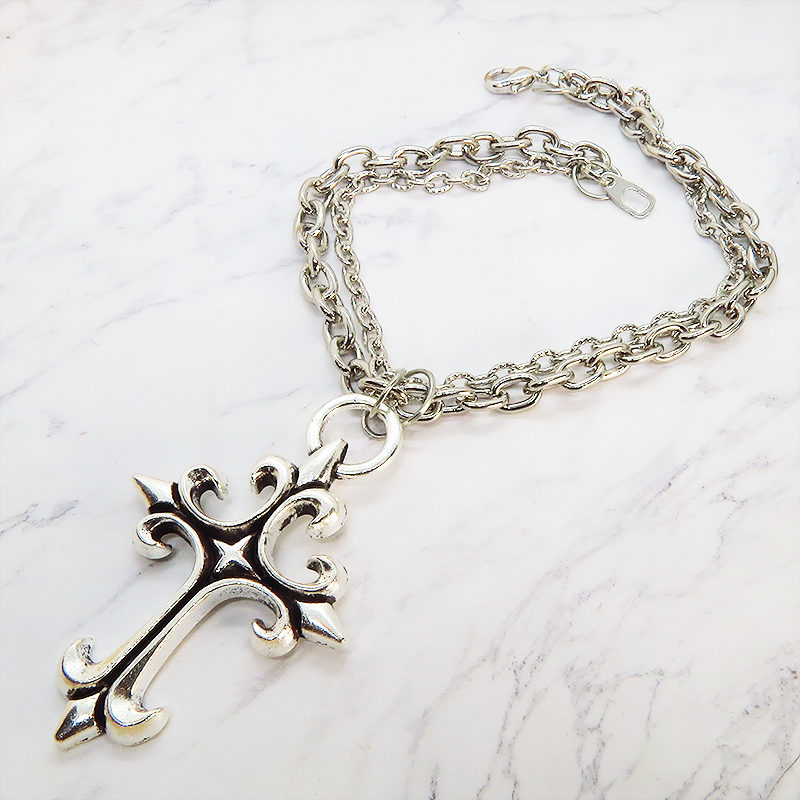 鋭角なロザリオ(十字架)のペンダントが、ゴシックでミステリアスな雰囲気を演出