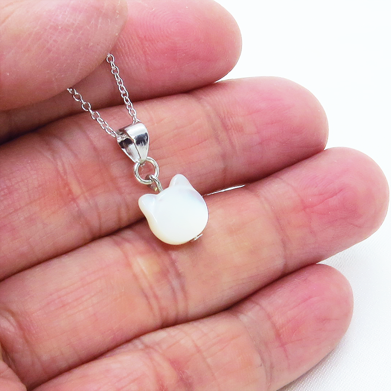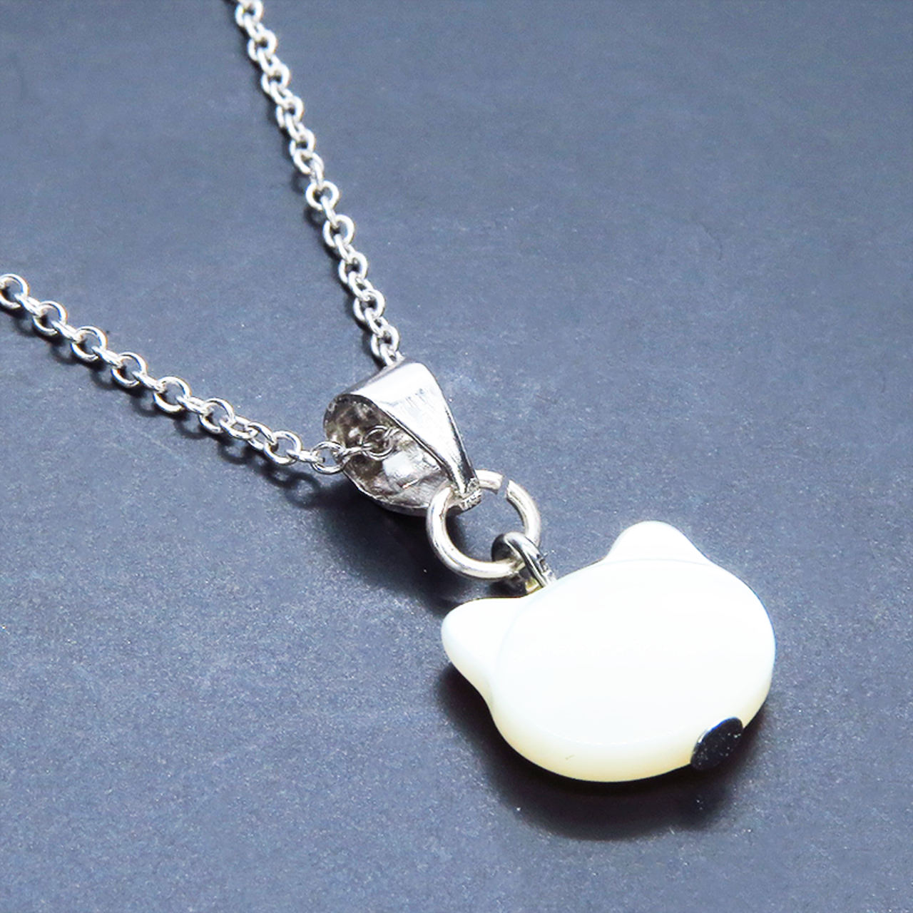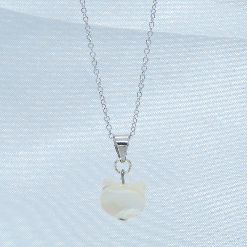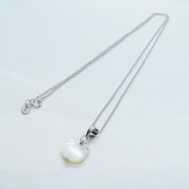 つややかな蝶貝(シェル)を猫フェイスモチーフにしたシルバー925ネックレスです