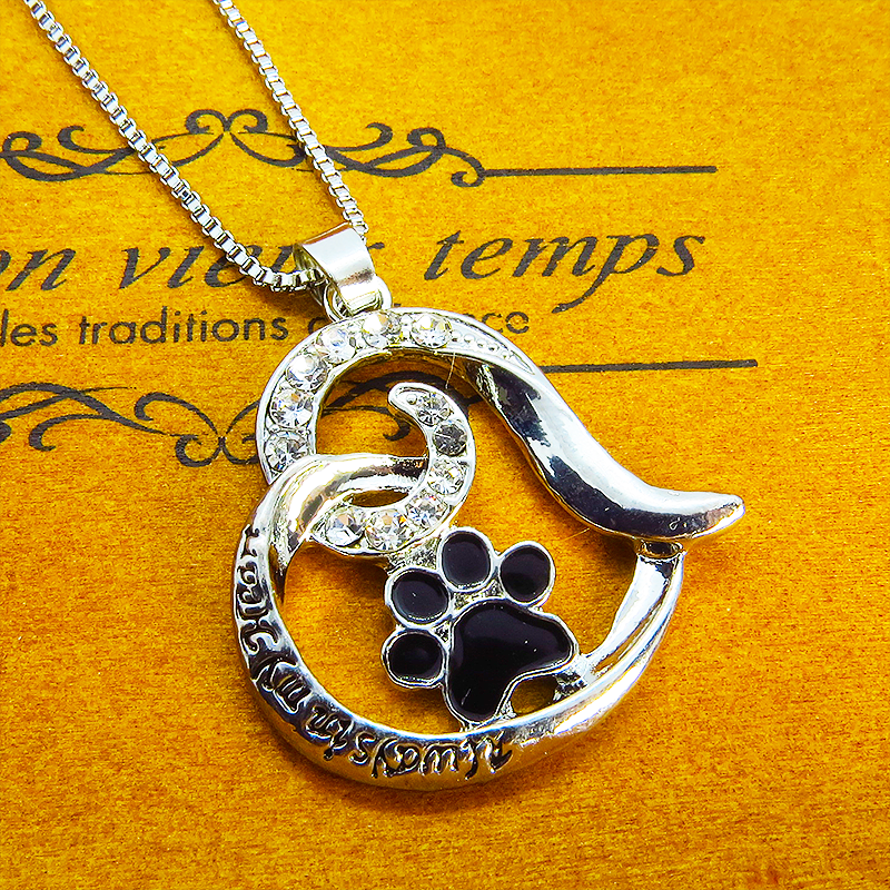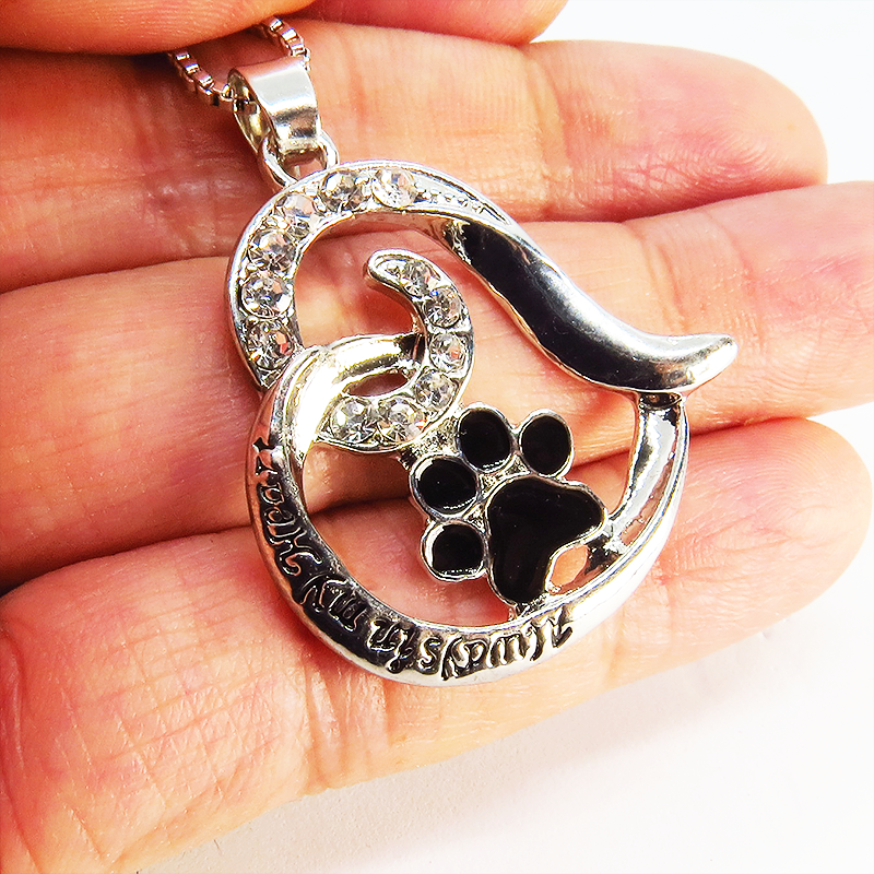 愛らしい肉球がワンポイントの、オープンハートのネックレスです